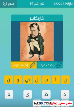 جواب لغز كاريكاتير لغز رقم 97 من المجموعة الحادية عشر من لعبة كلمات متقاطعة صقور الإبدآع