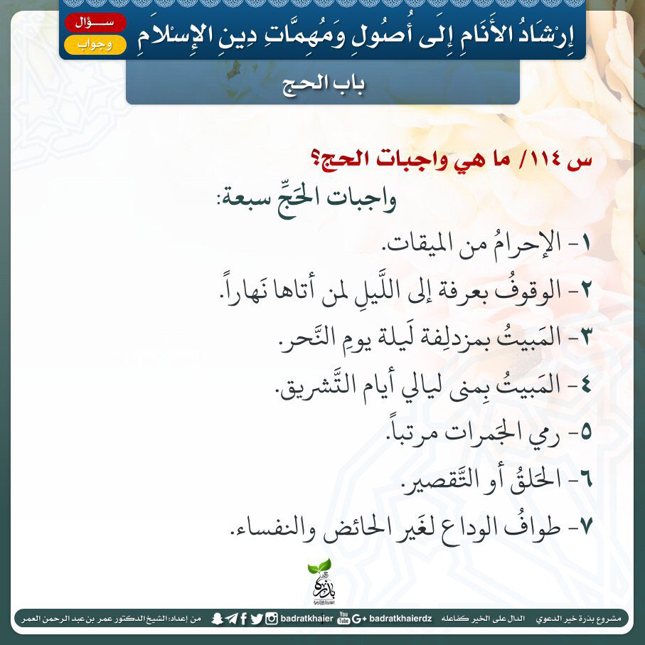مشروع بذرة خير الدعوي On Twitter إرشاد الأنام إلى أصول ومهمات دين الإسلام باب الحج ما هي واجبات الحج