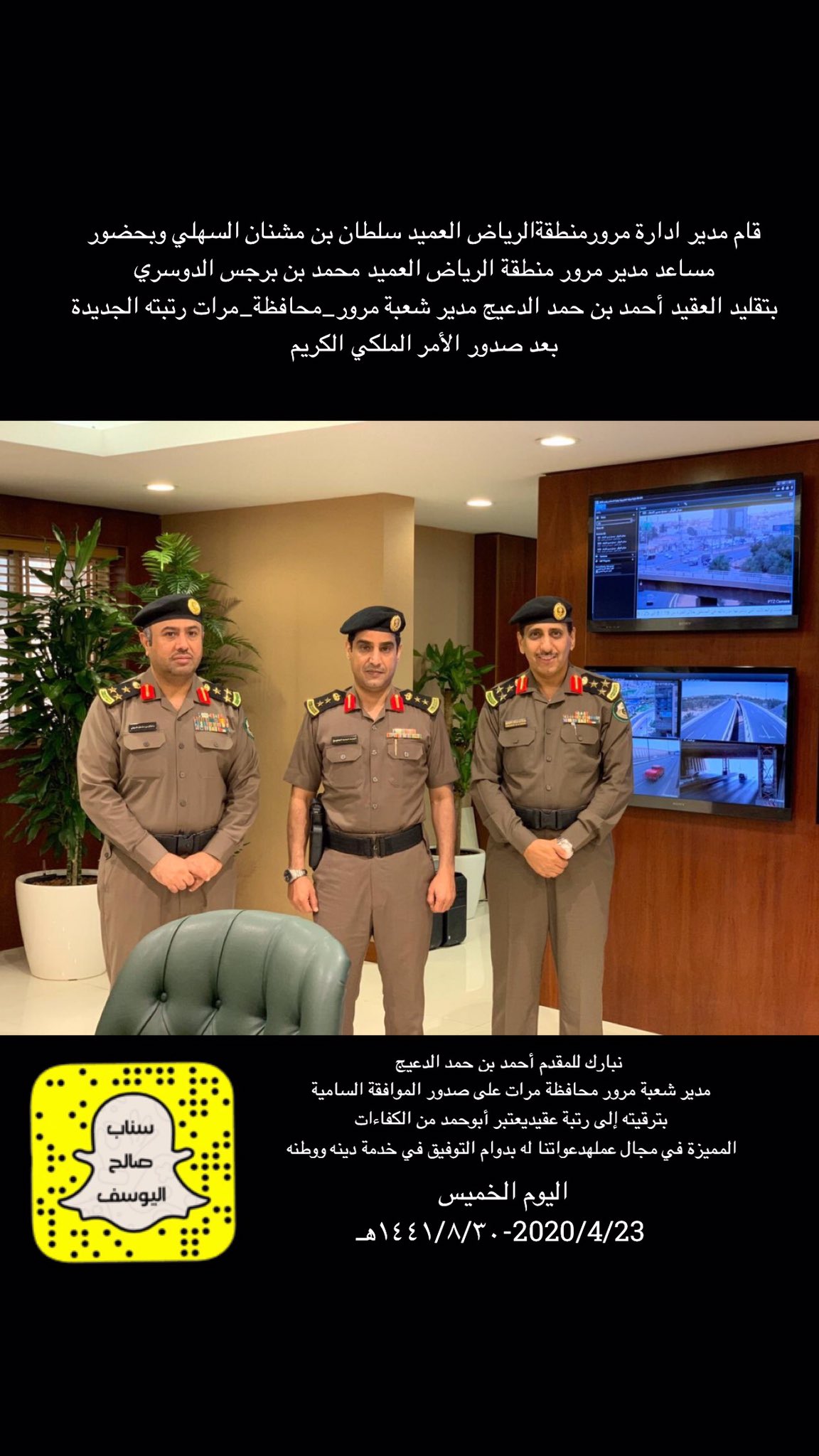 صالح اليوسف On Twitter قام مدير ادارة مرور منطقة الرياض العميد سلطان بن مشنان السهلي وبحضور مساعد مدير مرور منطقة الرياض العميد محمد بن برجس الدوسري بتقليد العقيد أحمد بن حمد الدعيج مدير شعبة