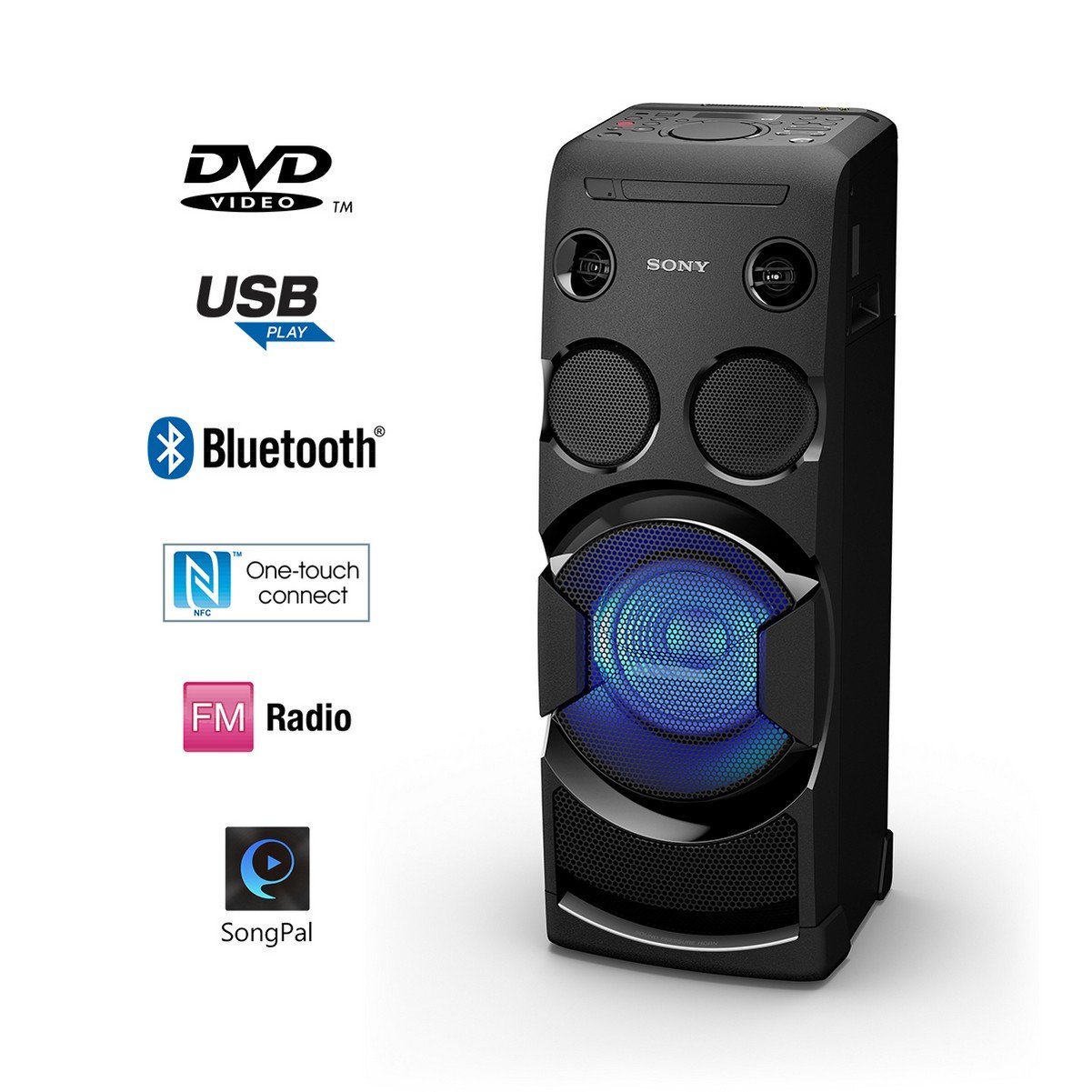 مكبر صوت حفلات سوني Mhc V02 صغير الحجم عالي القوة نظام موسيقى مربع واحد مع بلوتوث معزز ببلوتوث ومتوافق مع حامل ثلاثي اسود Amazon Ae