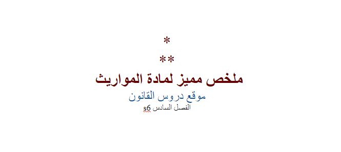 ملخصات مميزة في مادة علم المواريـث pdf.