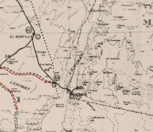 الأحيوات في وادي عربة في خريطة بريطاني ة عام 1937 م هنا المساعيد