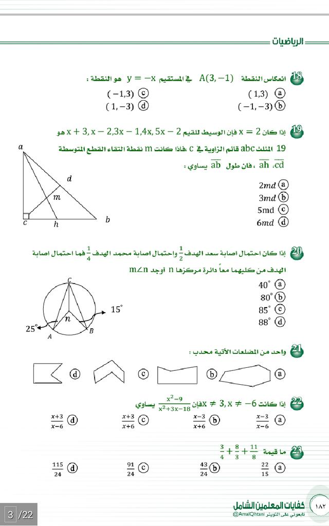 الرخصة المهنيه خبيرةاختبارات قياس د أمل القحطاني On Twitter نماذج اسئلة اعوام سابقه لكفايات الرياضيات من كتاب كفايات المعلمين الشامل 1 Http T Co N18pvznbti