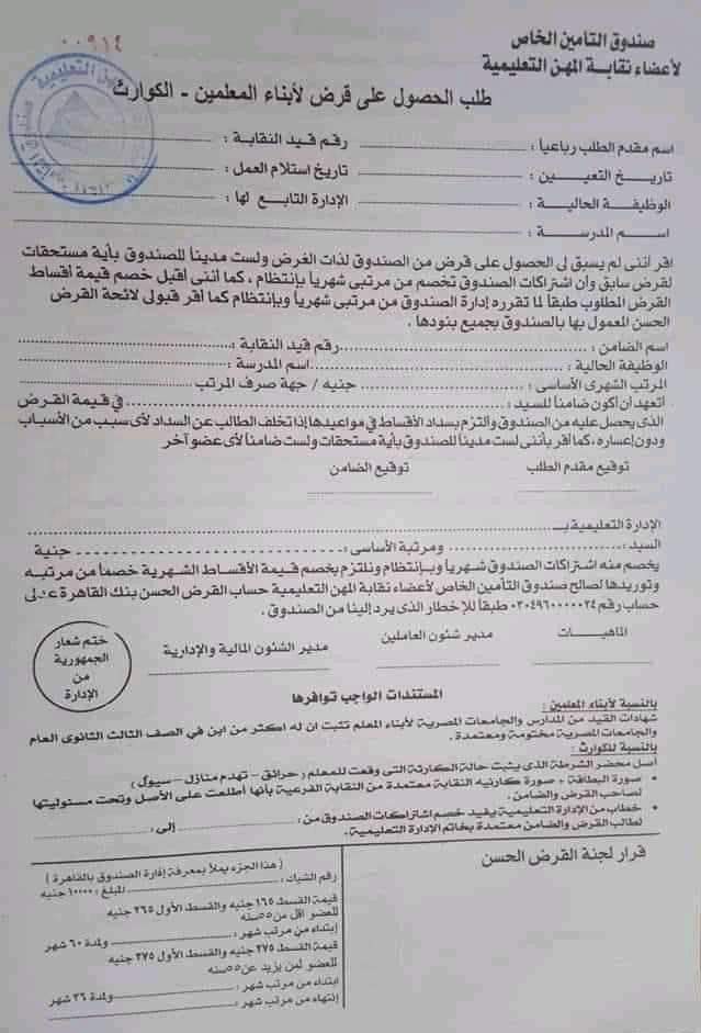 نموذج وشروط القرض الحسن لحديثي الزواج نقابة المعلمين بالتجمع الأول Facebook