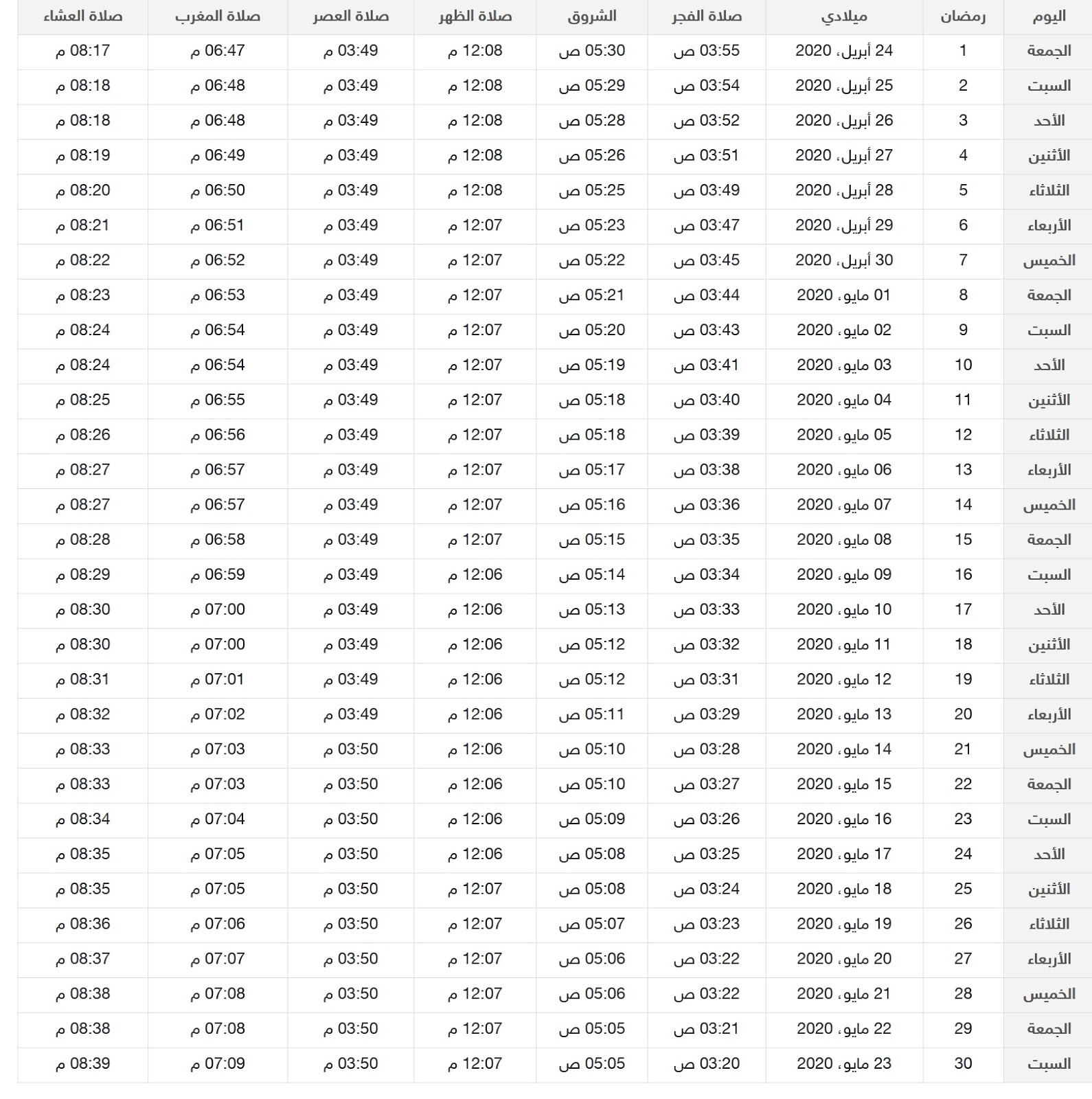 امساكية رمضان 1441 الدمام موعد صلاة الفجر والمغرب المصدر